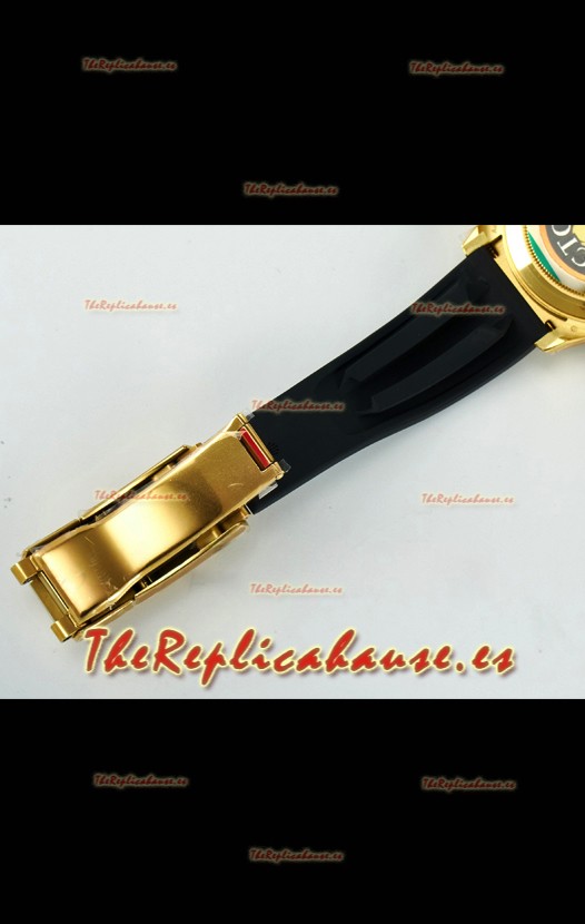 Correa de Goma Negra tipo Oyster-Flex con Cierre Liberación revisado como en el Genuino con cierre Muy Suave y Sistemas de Bloqueo de desmontaje como en el original