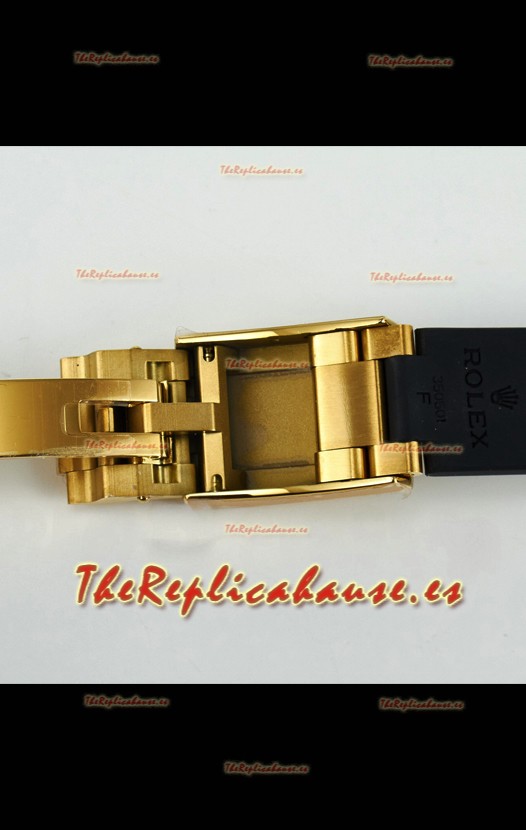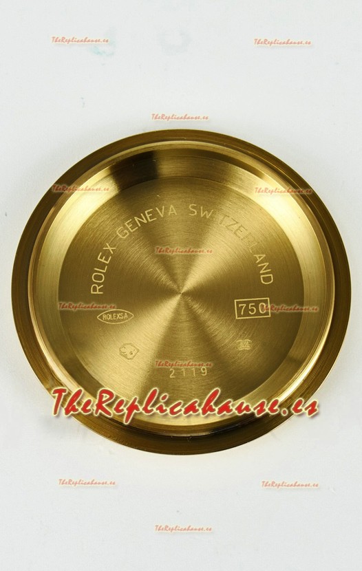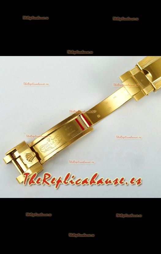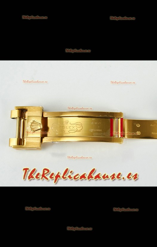 Caja Acero Inoxidable Solido 904L chapada en Oro Amarillo con Marcadores y Grabados Rolex como los Auténticos.