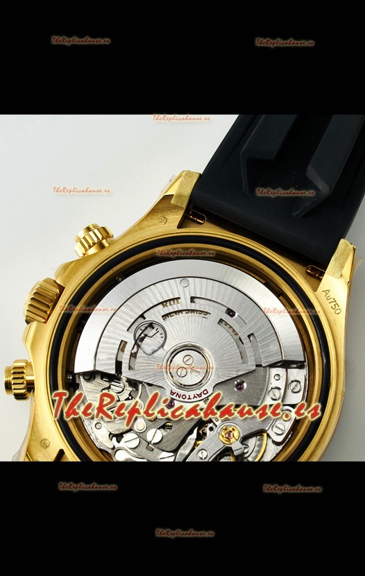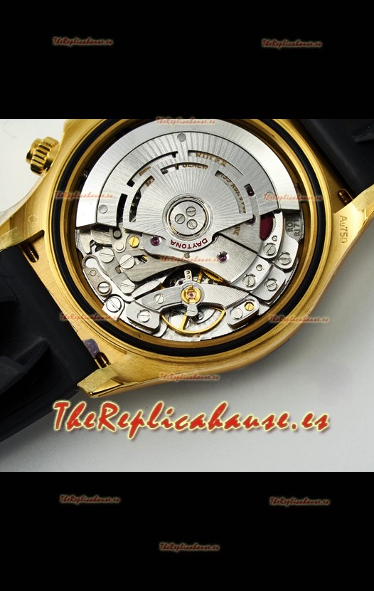 Genuino Movimiento Cal.4130 construido desde cero sin modificaciones, Platos y Rotores chapados en Platino como en el Original. El mismo Movimiento que encuentras en los Relojes Rolex Daytona