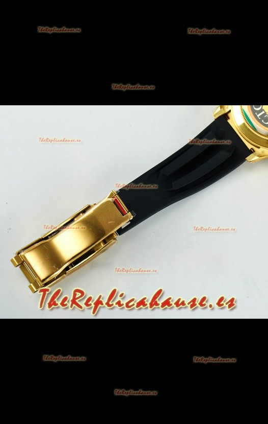 Correa de Goma Negra tipo Oyster-Flex con Cierre Liberación revisado como en el Genuino con cierre Muy Suave y Sistemas de Bloqueo de desmontaje como en el original