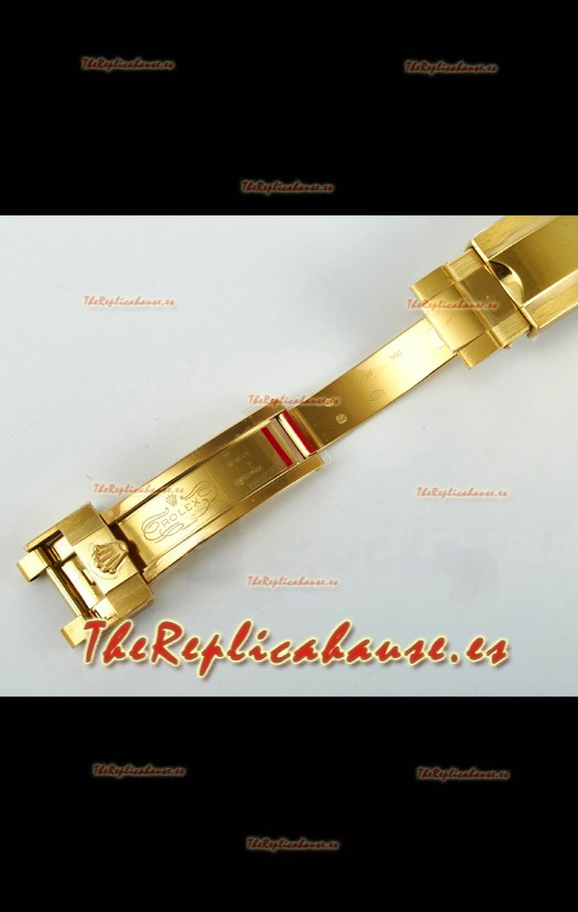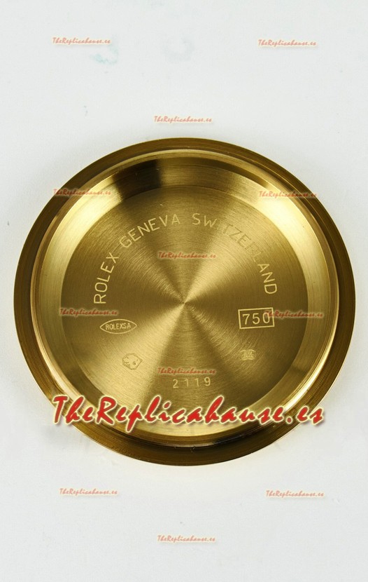 Caja Acero Inoxidable Solido 904L chapada en Oro Amarillo con Marcadores y Grabados Rolex como los Auténticos.