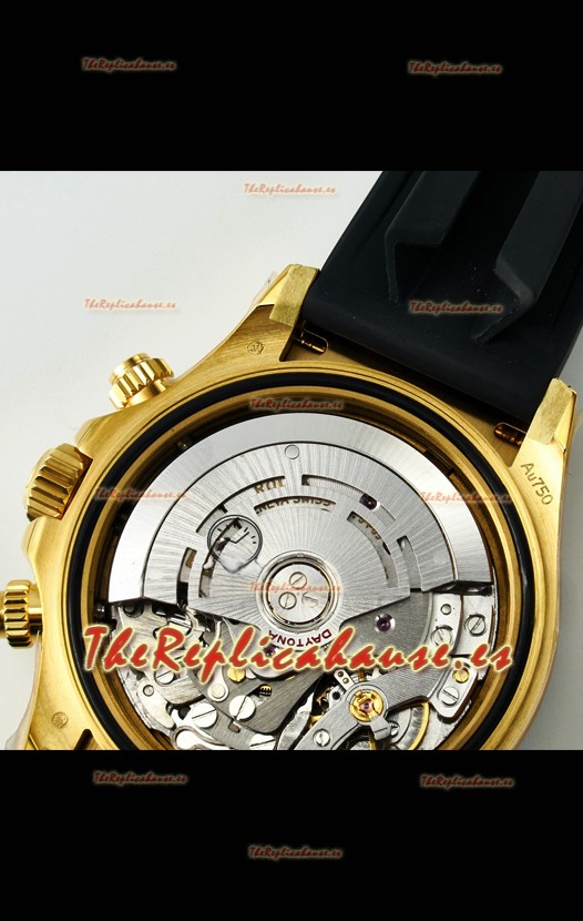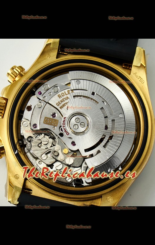 Genuino Movimiento Cal.4130 construido desde cero sin modificaciones, Platos y Rotores chapados en Platino como en el Original. El mismo Movimiento que encuentras en los Relojes Rolex Daytona