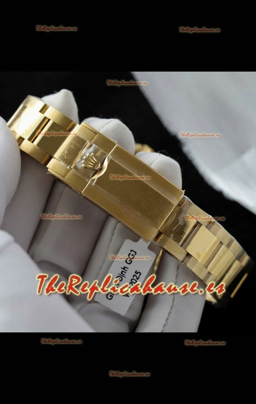 Caja Acero Inoxidable Solido 904L chapada en Oro Amarillo 18K con Marcadores y Grabados Rolex como los Auténticos.