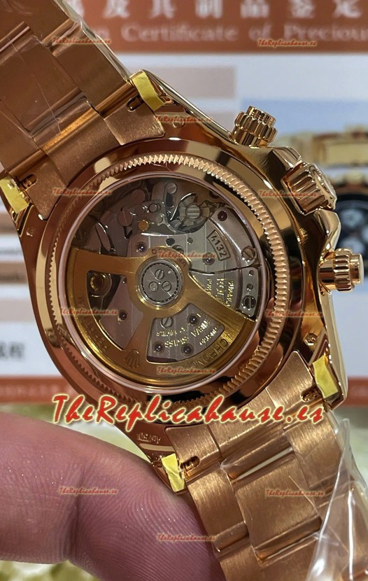 Genuino Movimiento Cal.4132 construido desde cero sin modificaciones, Platos y Rotores chapados en Platino como en el Original. El mismo Movimiento que encuentras en los Relojes Rolex Daytona