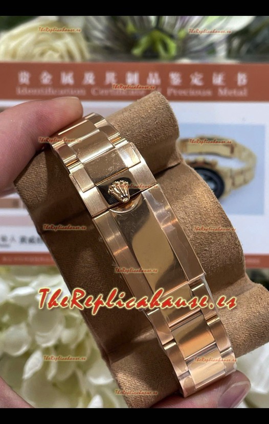 Correa Acero Inoxidable 904L chapada en Oro Rosado 18K unida con Tornillos exactamente como en el Genuino completada con Cierre Liberación revisado como en el Genuino con cierre Muy Suave y Sistemas de Bloqueo de desmontaje como en el original