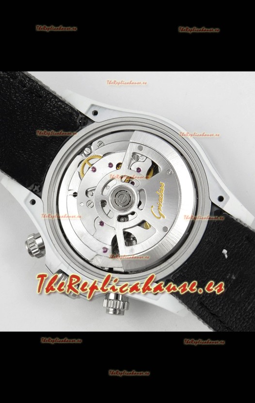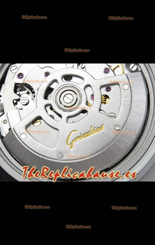 Genuino Movimiento Cal.4130 construido desde cero sin modificaciones, Platos y Rotores chapados en Platino como en el Original. El mismo Movimiento que encuentras en los Relojes Rolex Daytona