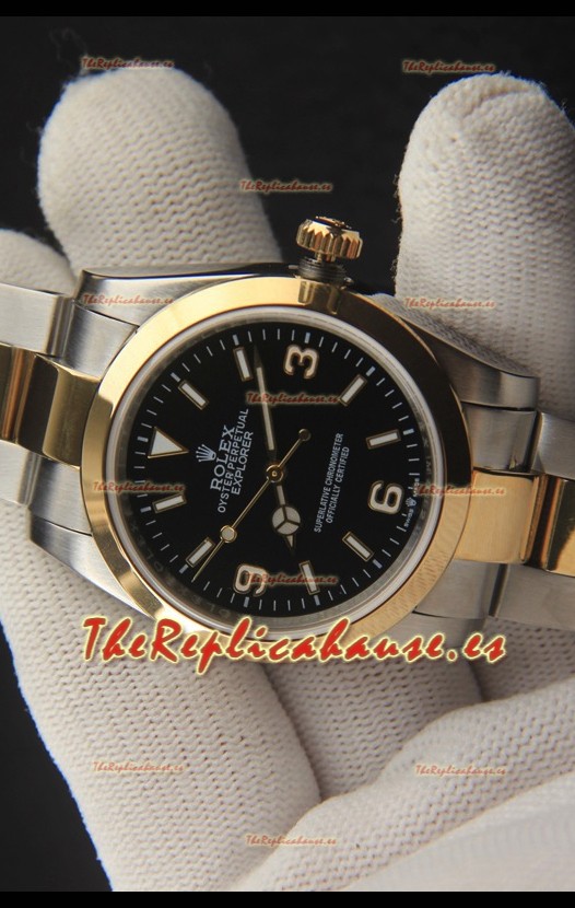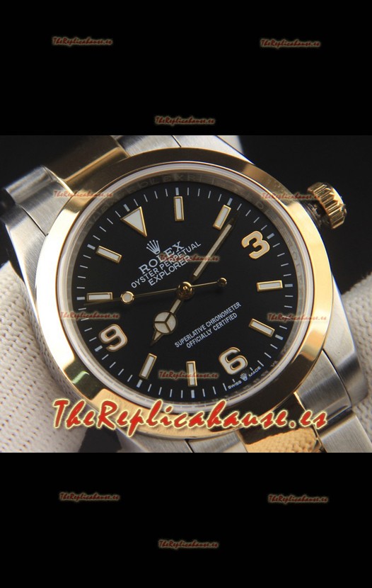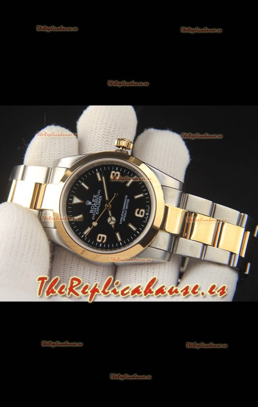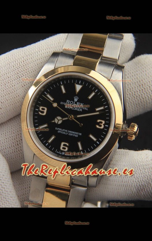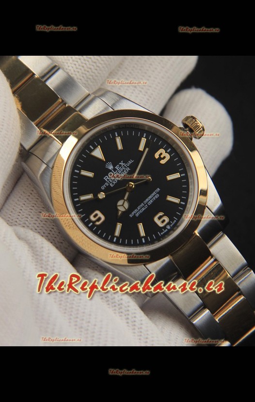 Rolex Explorer I Movimiento Japonés Reloj Réplica en Dos Tonos Dial Negro 36MM