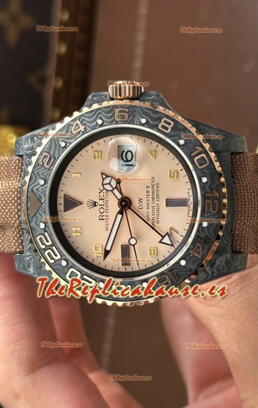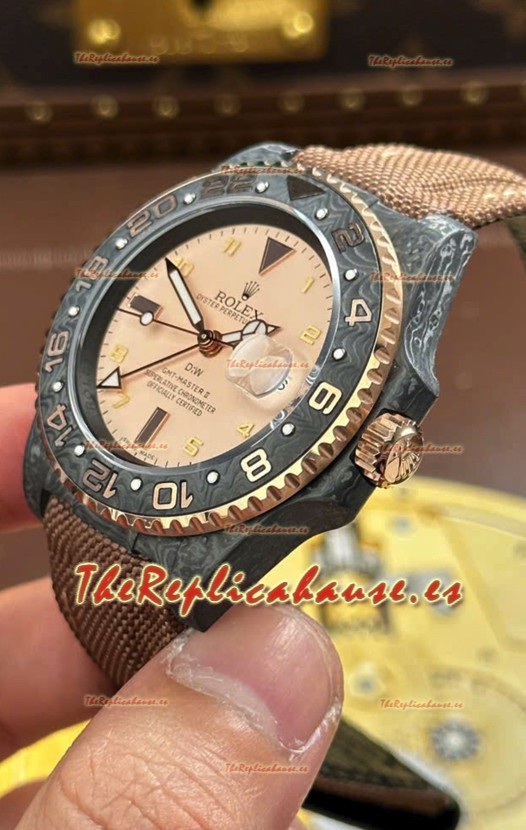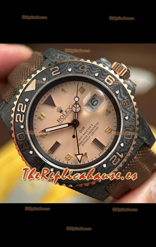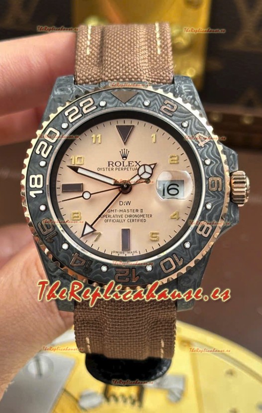 Rolex GMT Masters DiW Black Caja de Carbono Reloj Réplica Suizo Dial Gris Beige