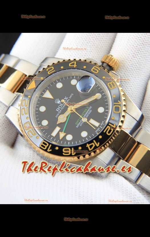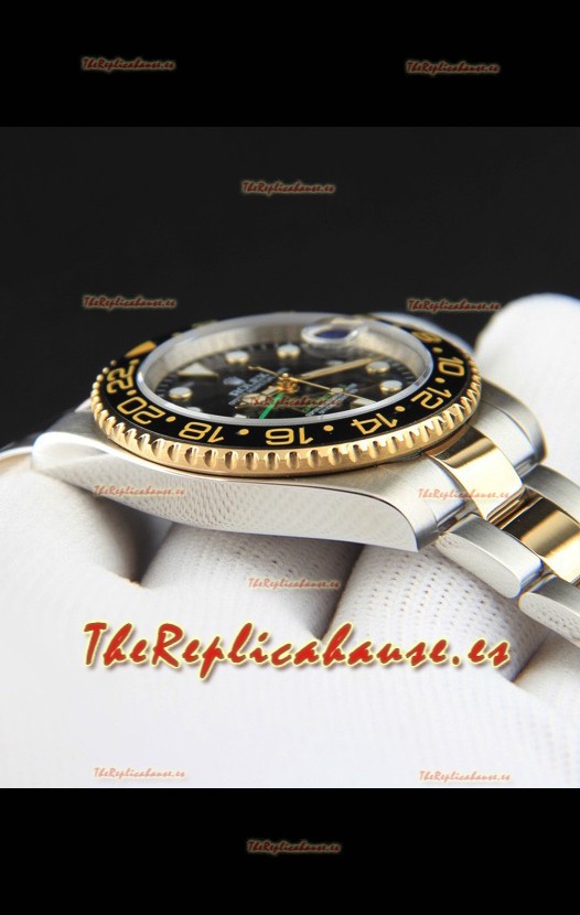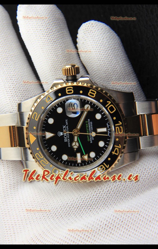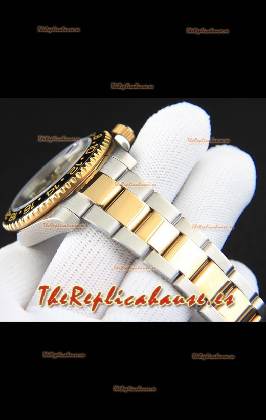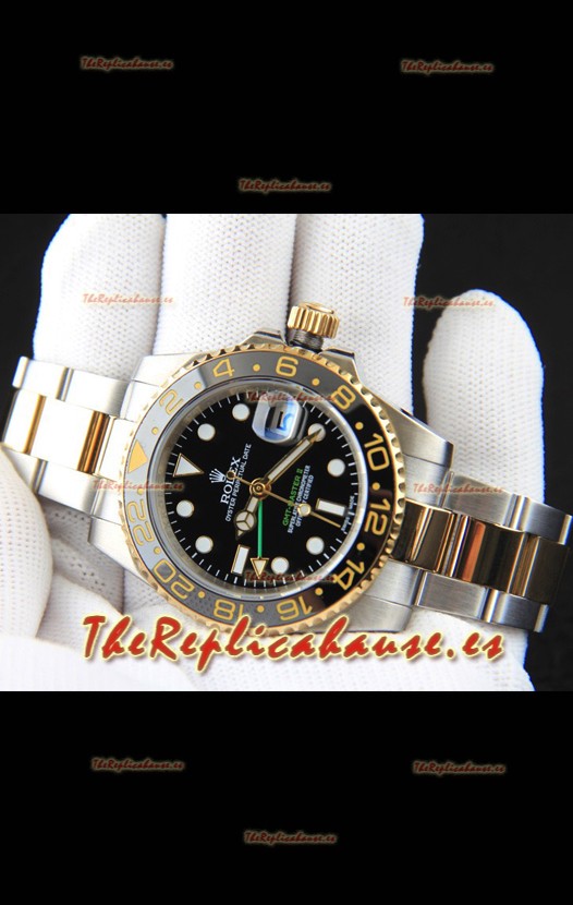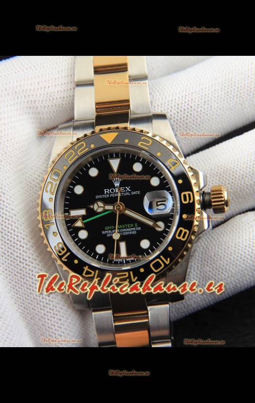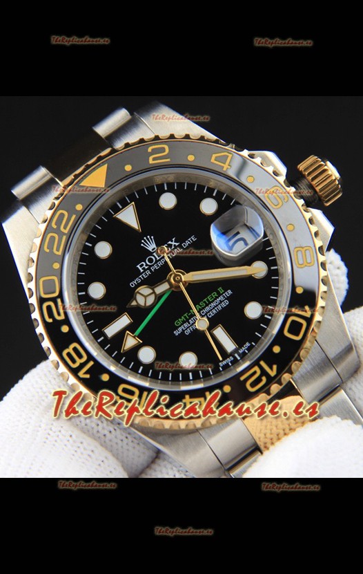 Rolex GMT Masters II 2 Tone Japonés chapado en Oro Rosado Reloj Réplica Dial Negro