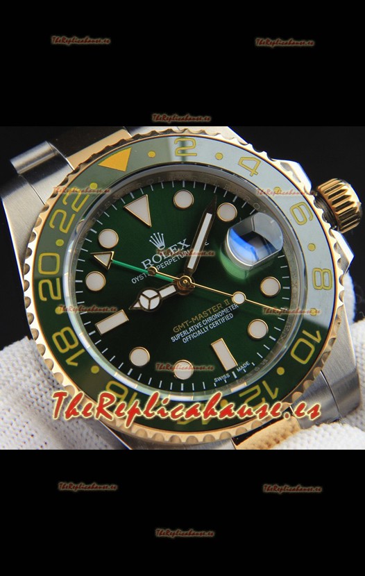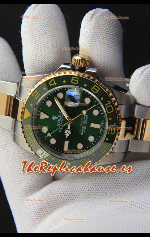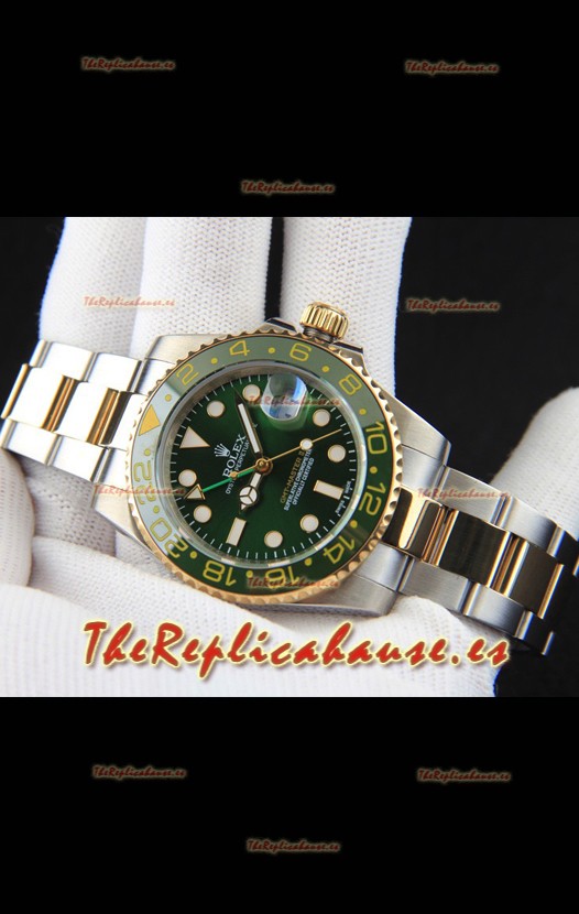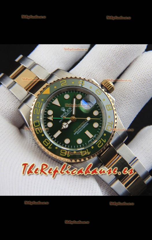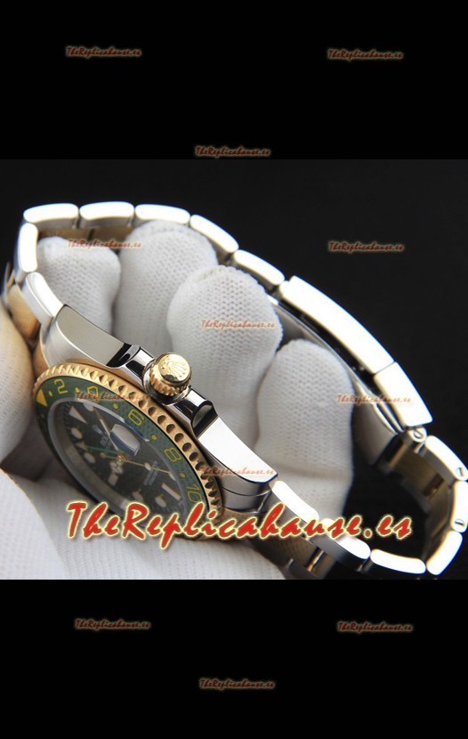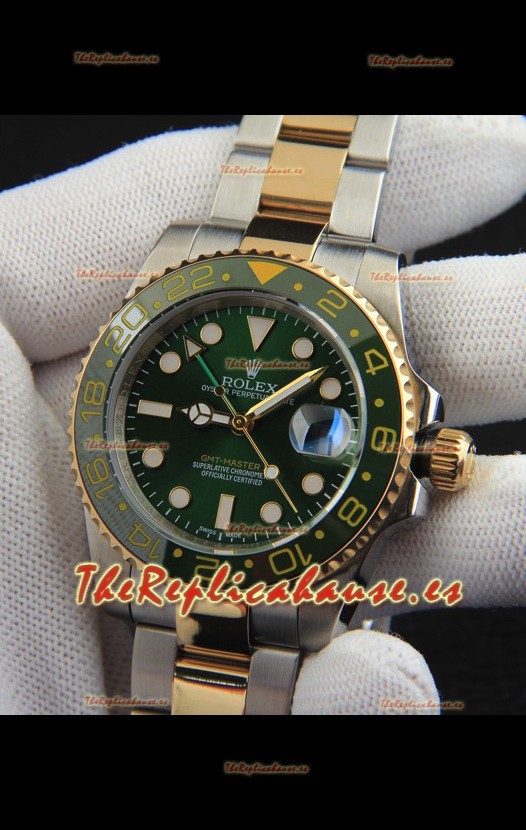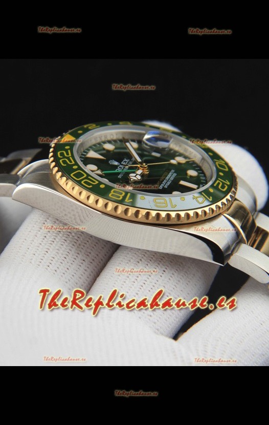 Rolex GMT Masters II 2 Tone Japonés chapado en Oro Rosado Reloj Réplica Dial Verde