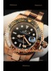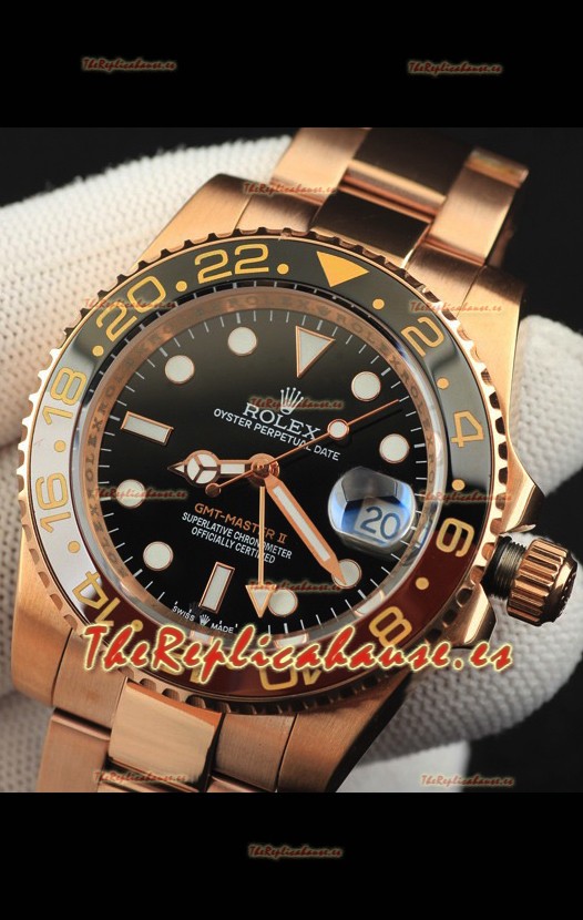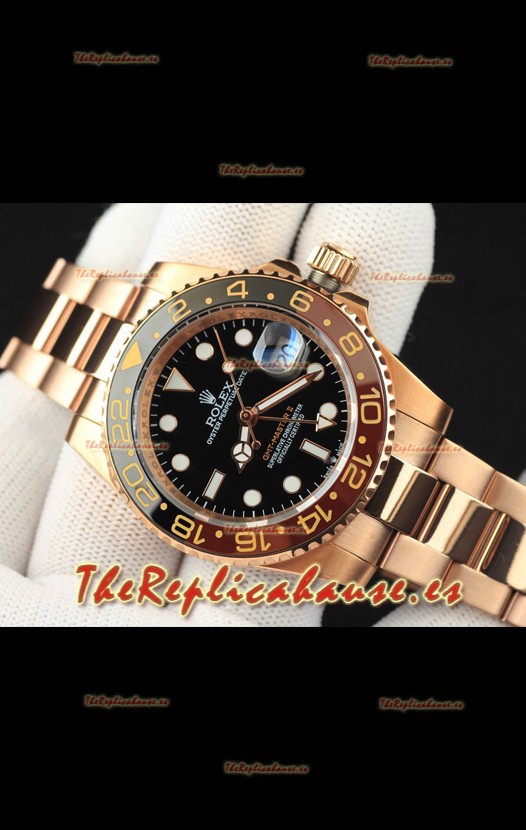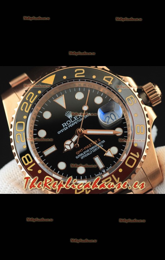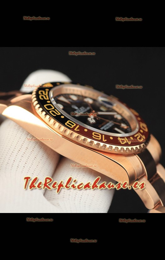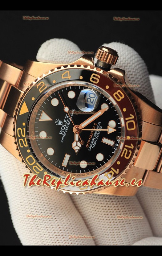 Rolex GMT Masters II Japonés chapado en Oro Rosado Reloj Réplica Dial Negro