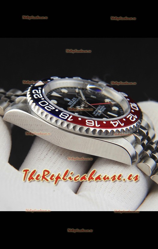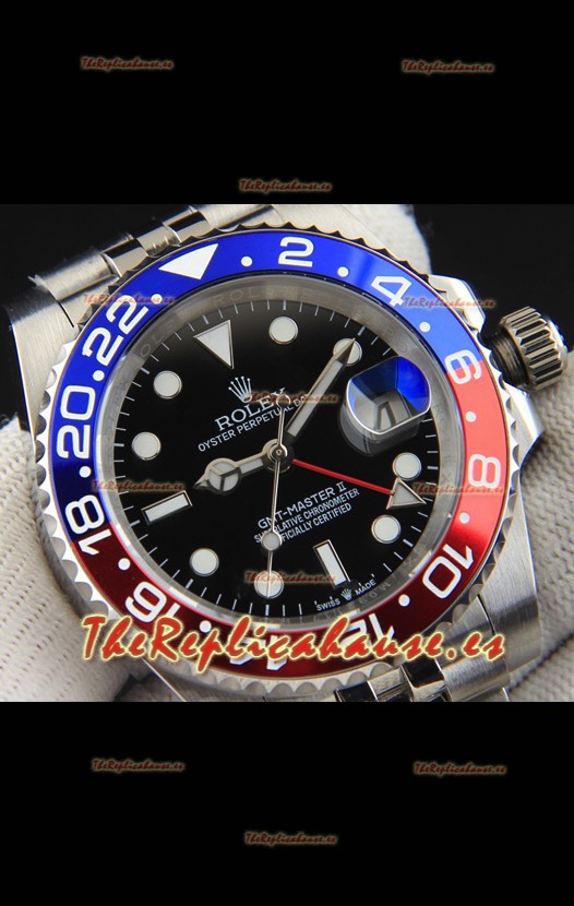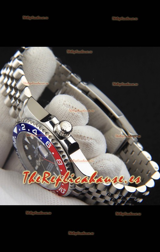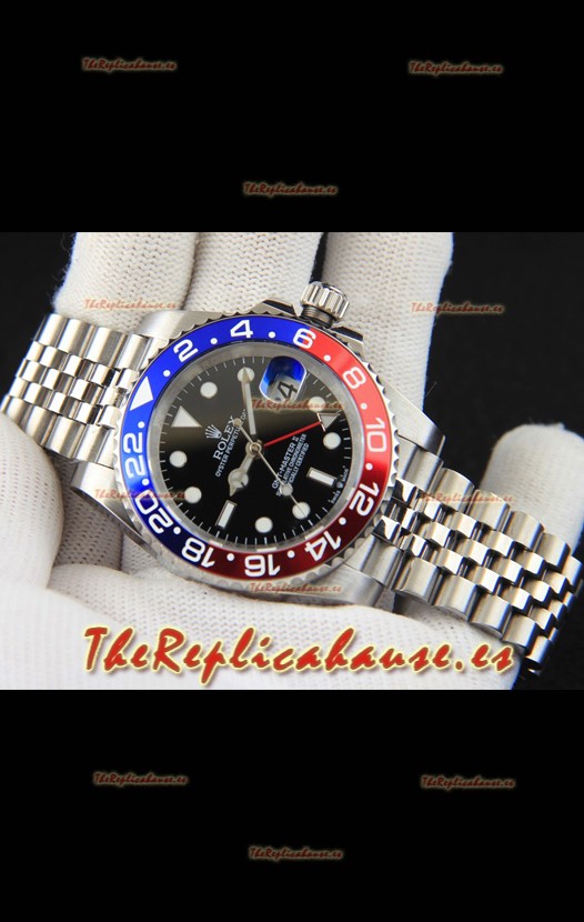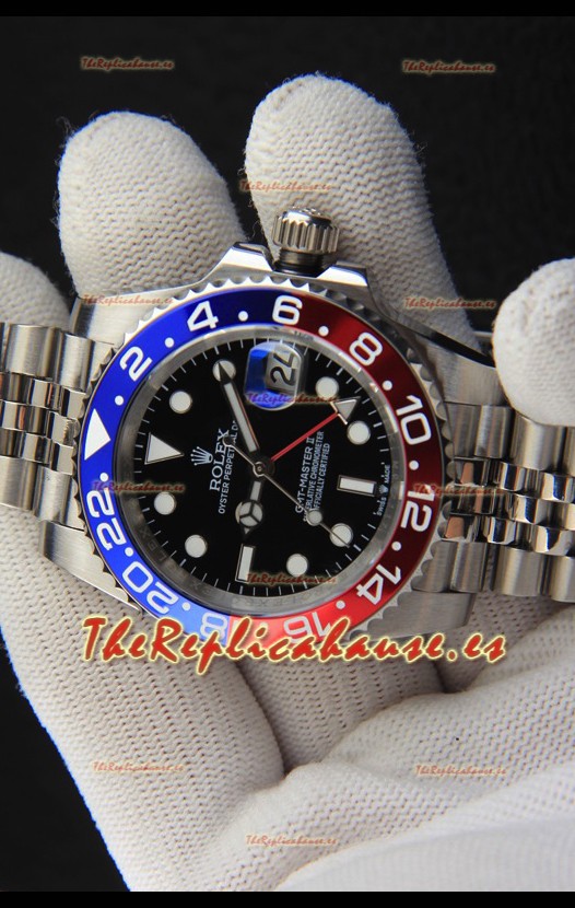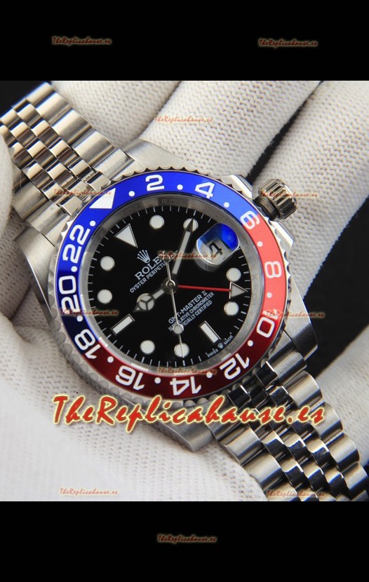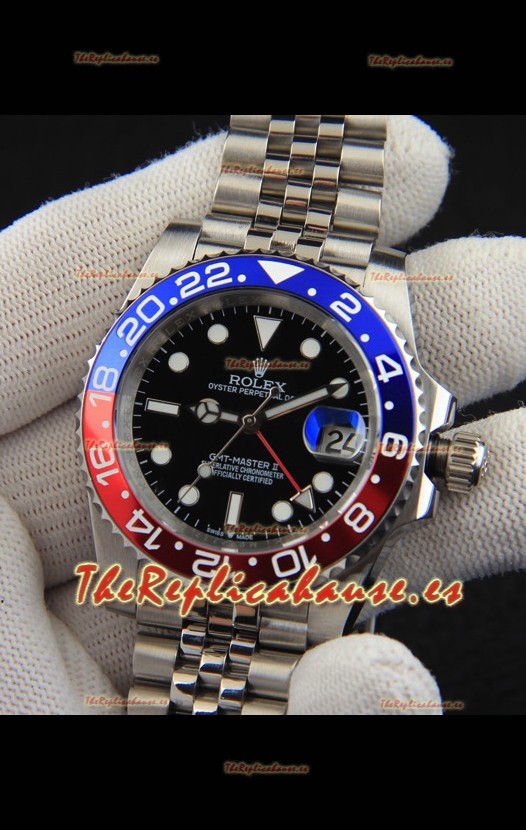 Rolex GMT Masters II Movimiento Japonés Reloj Réplica Caja Acero Dial Negro