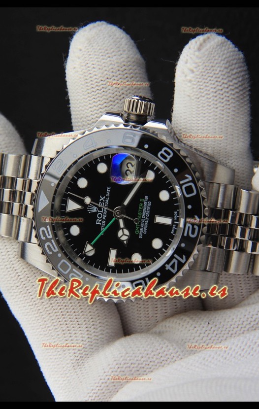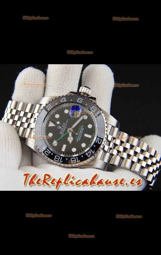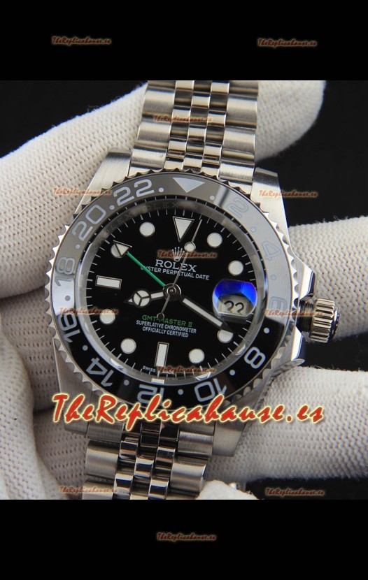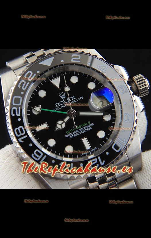 Rolex GMT Masters II Movimiento Japonés Reloj Réplica Caja Acero Dial Negro