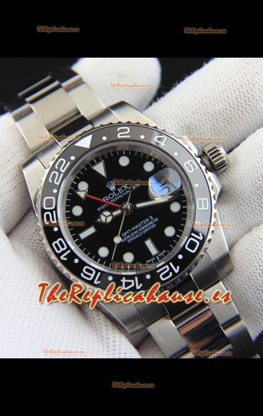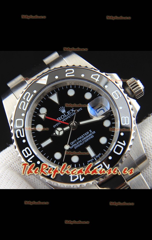 Rolex GMT Masters II Movimiento Japonés Reloj Réplica Caja Acero Dial Negro
