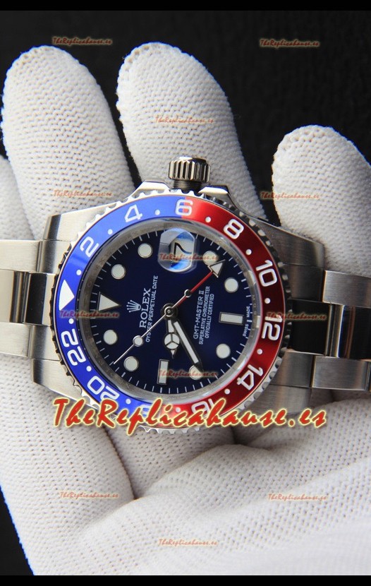 Rolex GMT Masters II Movimiento Japonés Reloj Réplica Caja Acero Dial Negro