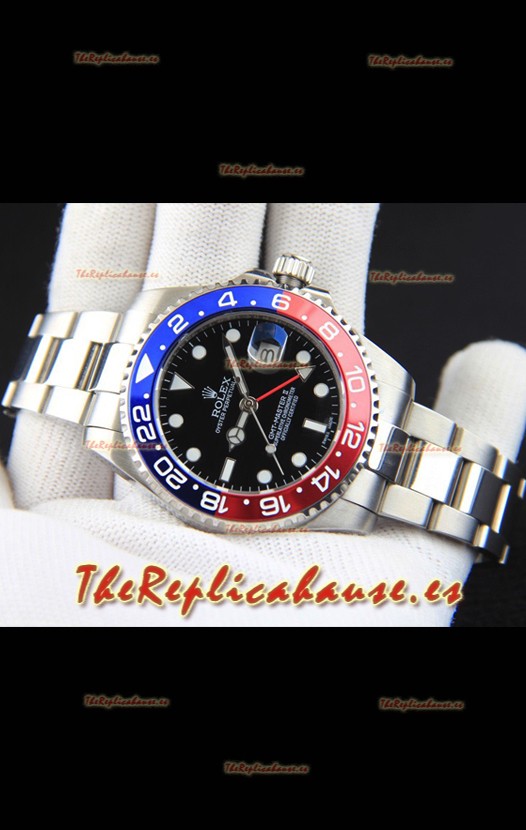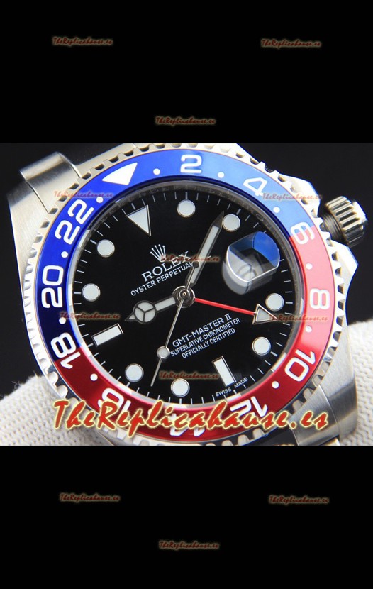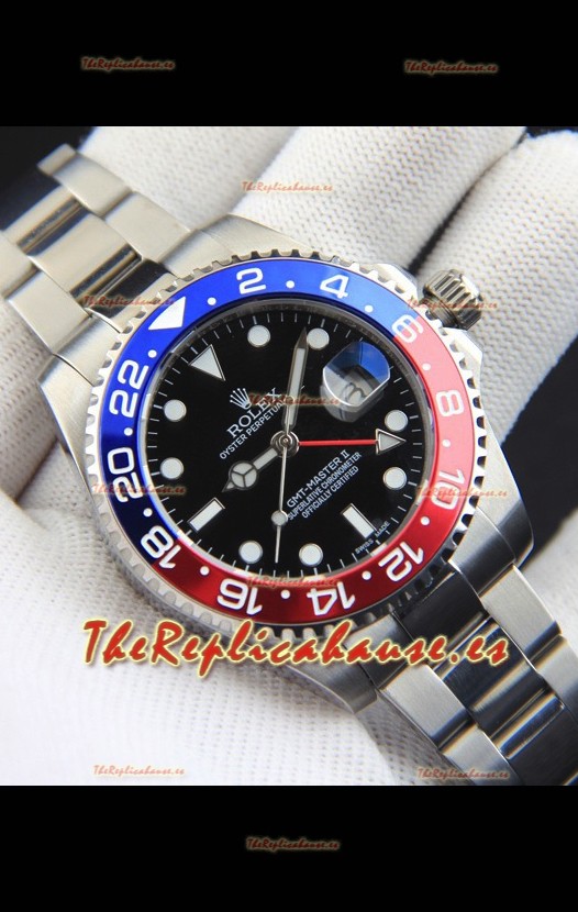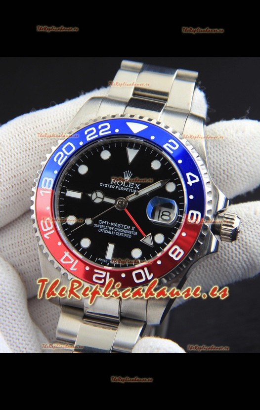 Rolex GMT Masters II Movimiento Japonés Reloj Réplica Caja Acero Dial Negro