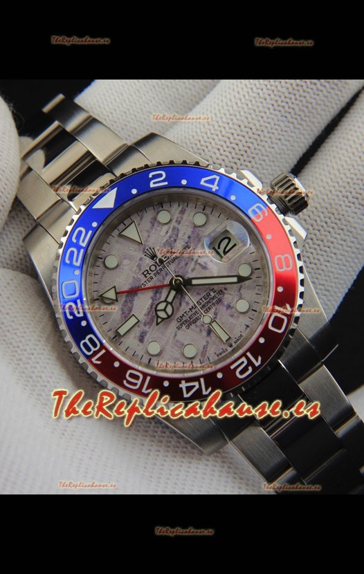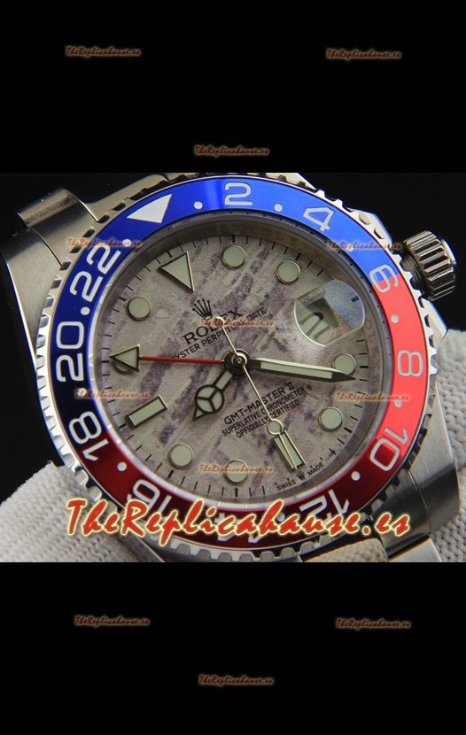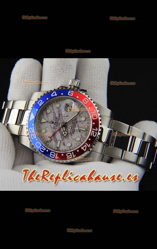Rolex GMT Masters II Movimiento Japonés Reloj Réplica Caja Acero Dial Patrón Meteorito