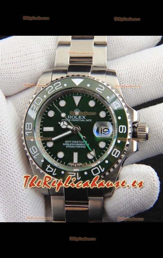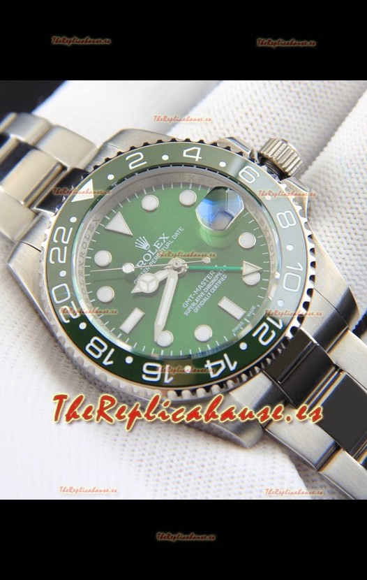 Rolex GMT Masters II Movimiento Japonés Reloj Réplica Caja Acero Dial Verde
