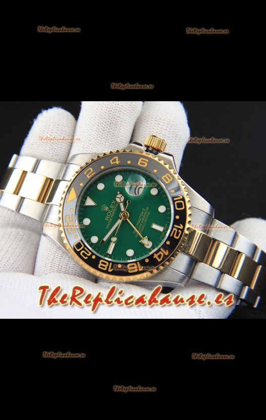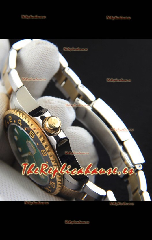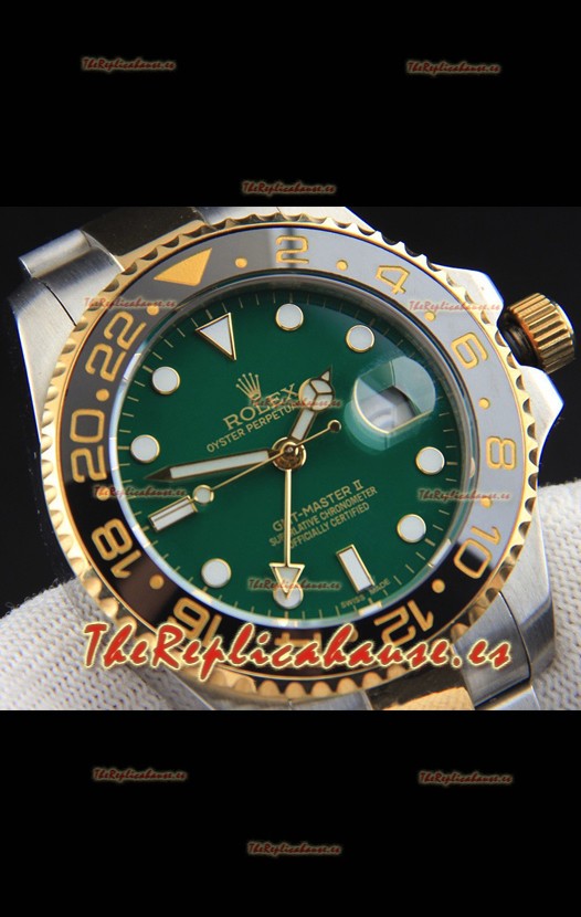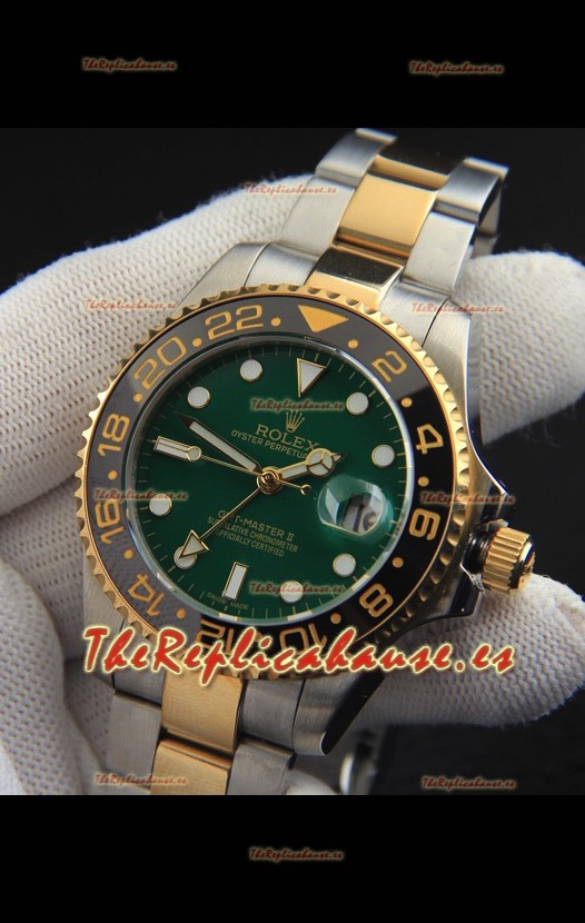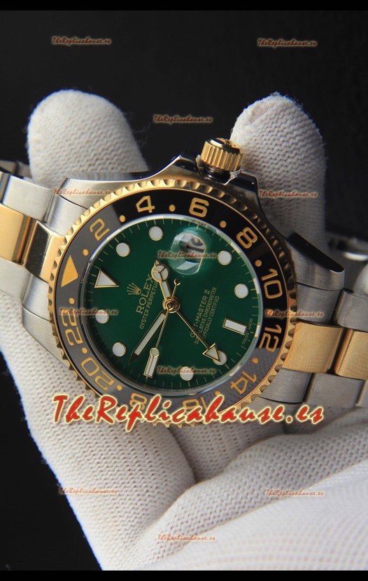 Rolex GMT Masters II Movimiento Japonés Reloj Réplica en Dos Tonos Dial Verde