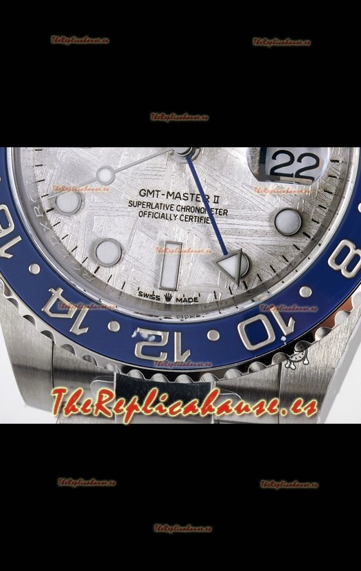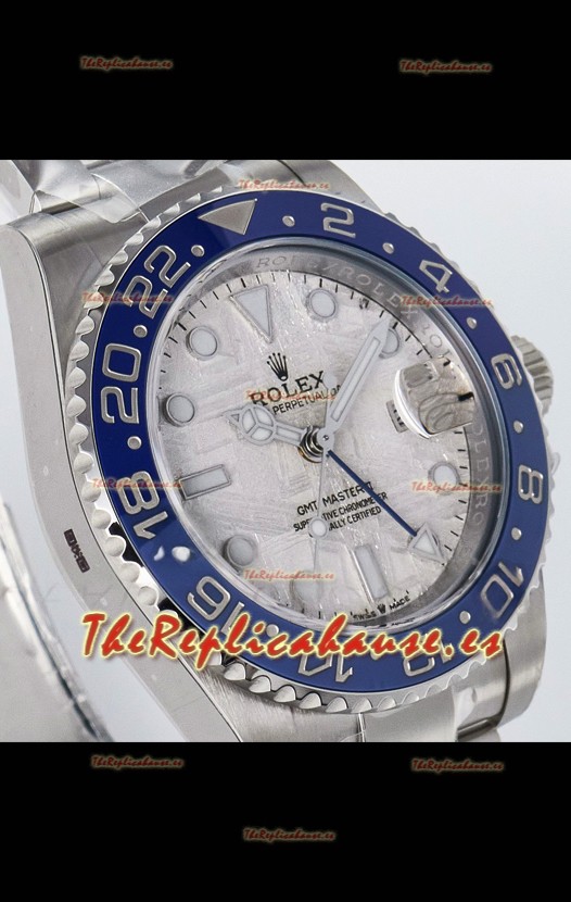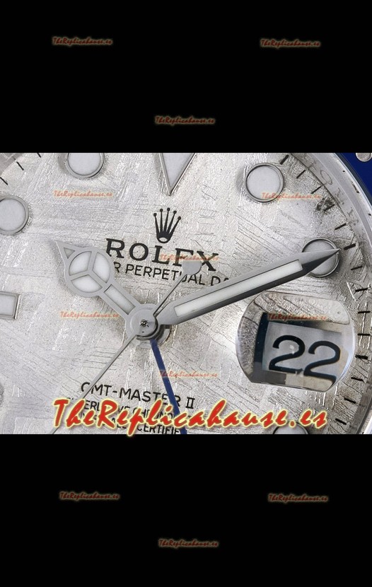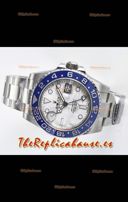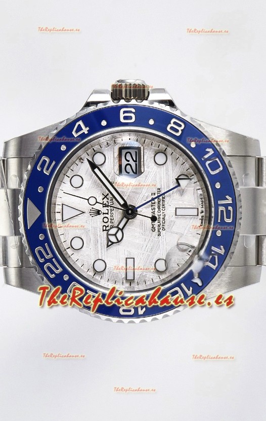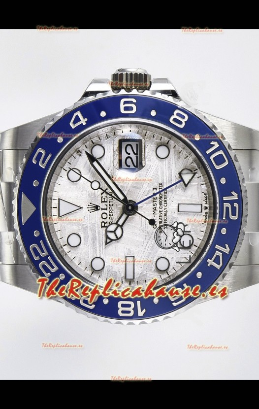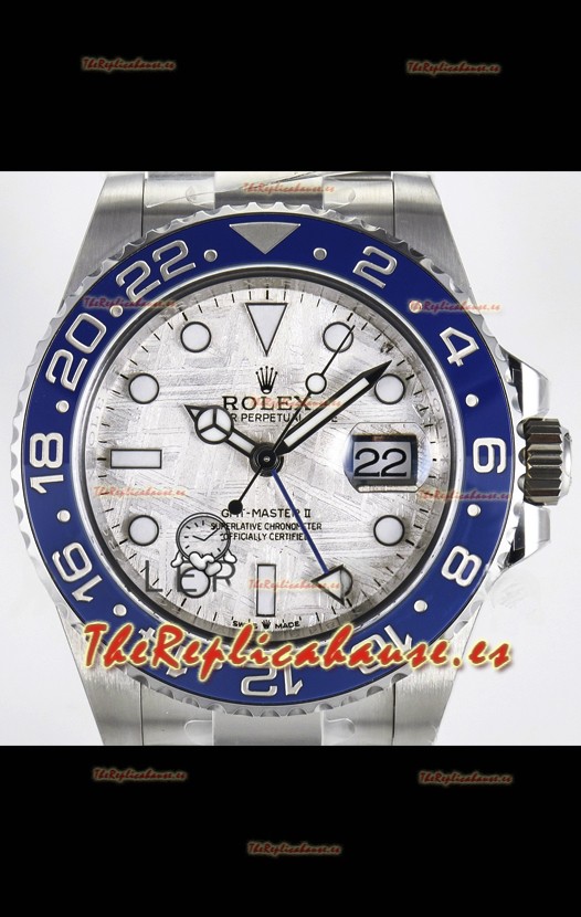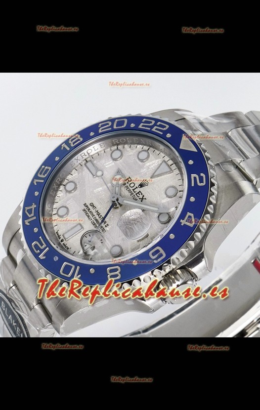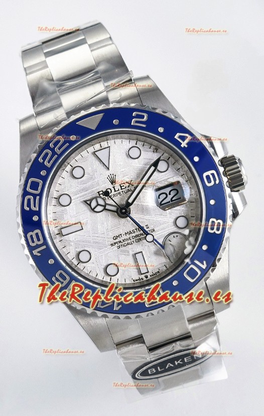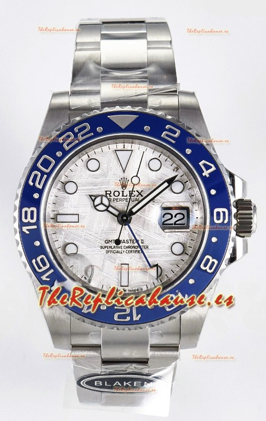 El mejor Rolex GMT replicado hasta la fecha. El primer modelo de Rolex en adoptar una Caja y Correa de Acero 904L, que es el mismo acero usado por Rolex