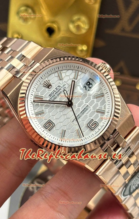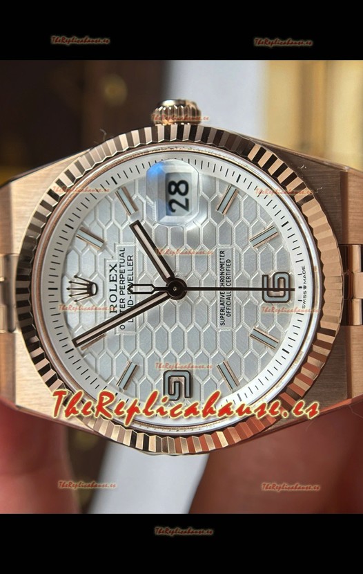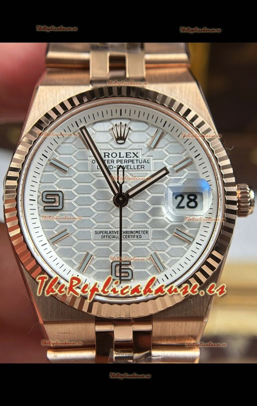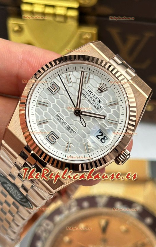 Rolex Land-Dweller 127235 Acero Diseño Panal Abeja Oro Rosado 36MM Reloj Réplica Suizo