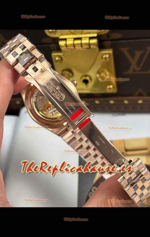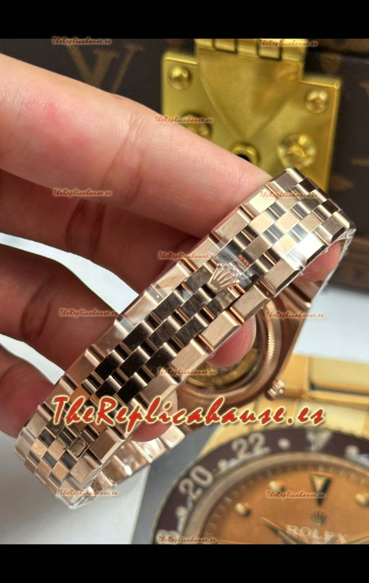 Correa Acero Inoxidable 904L chapada en Oro Rosado 18K con Cierre Plegable. Los eslabones de los extremos coinciden al ras con la Caja. - Una versión Muy Mejorada de la Correa Datejust