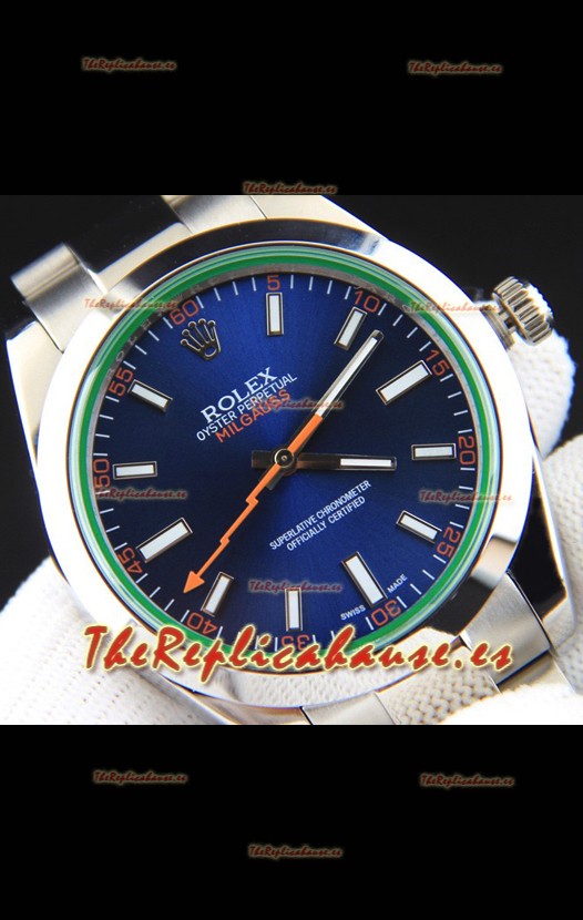 Rolex Milgauss Movimiento Japonés Reloj Réplica en Dial Azul