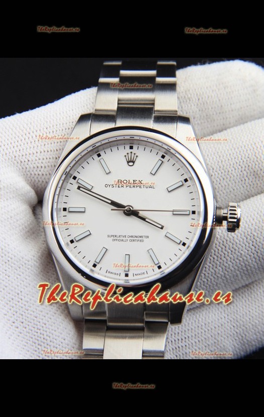 Rolex Oyster Perpetual Movimiento Japonés Reloj Réplica39MM - Dial Blanco