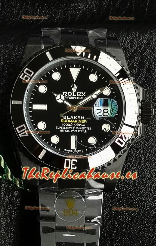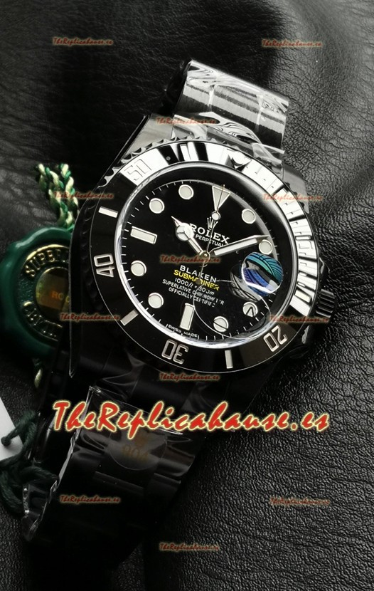Rolex Submariner Blaken DLC Coated Reloj Réplica Suizo en Dial Negro