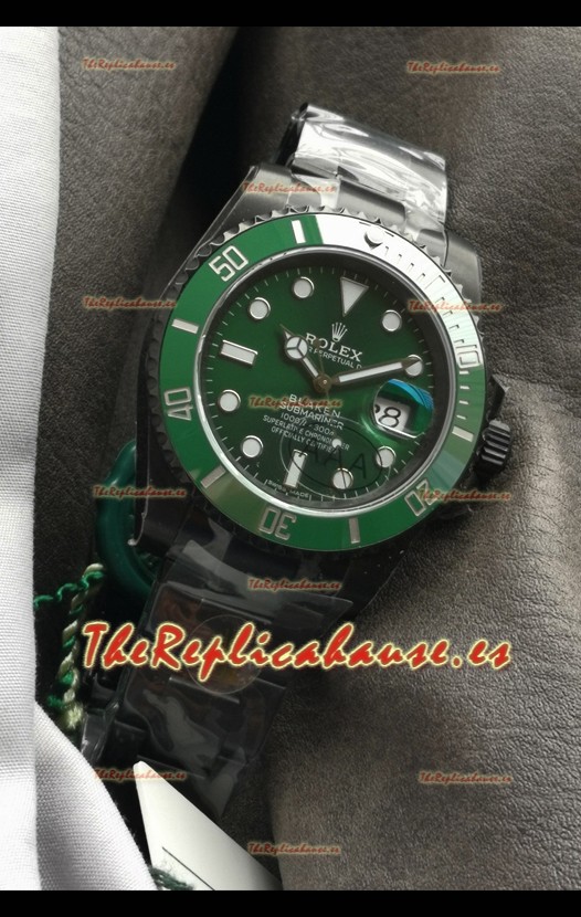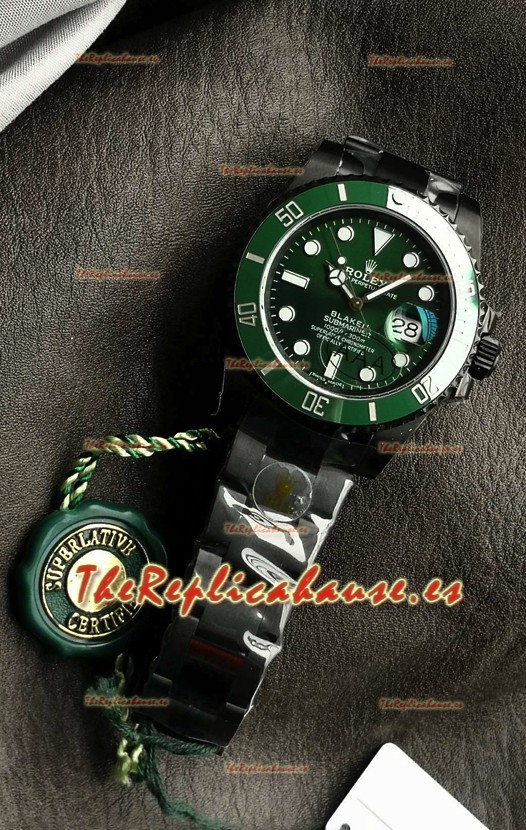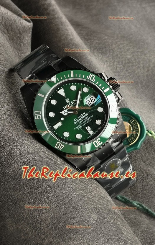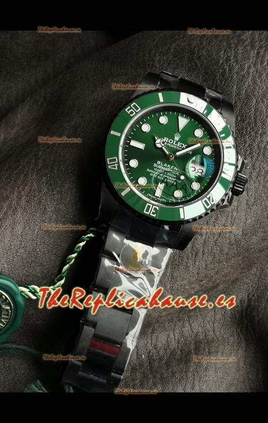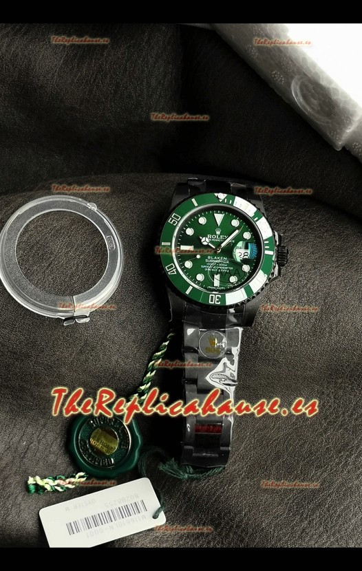 Rolex Submariner Blaken DLC Coated Reloj Réplica Suizo en Dial Verde