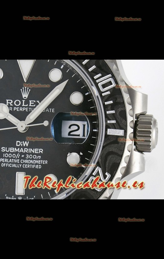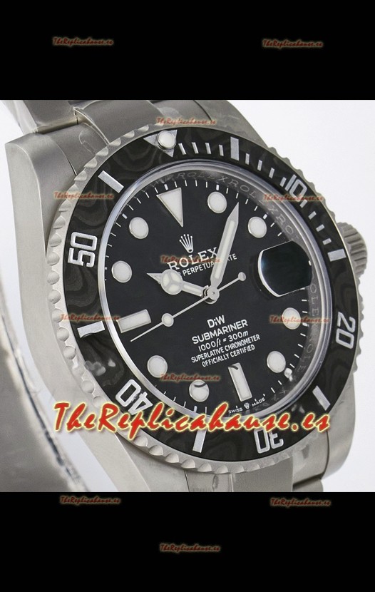 Rolex Submariner DiW, Caja de Acero con Acabado Arenado y Bisel de Fibra de Carbono, Dial Negro.