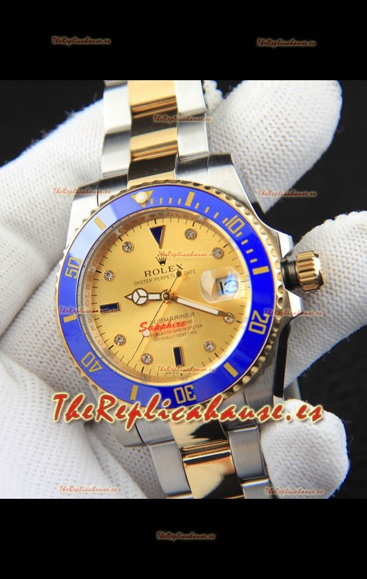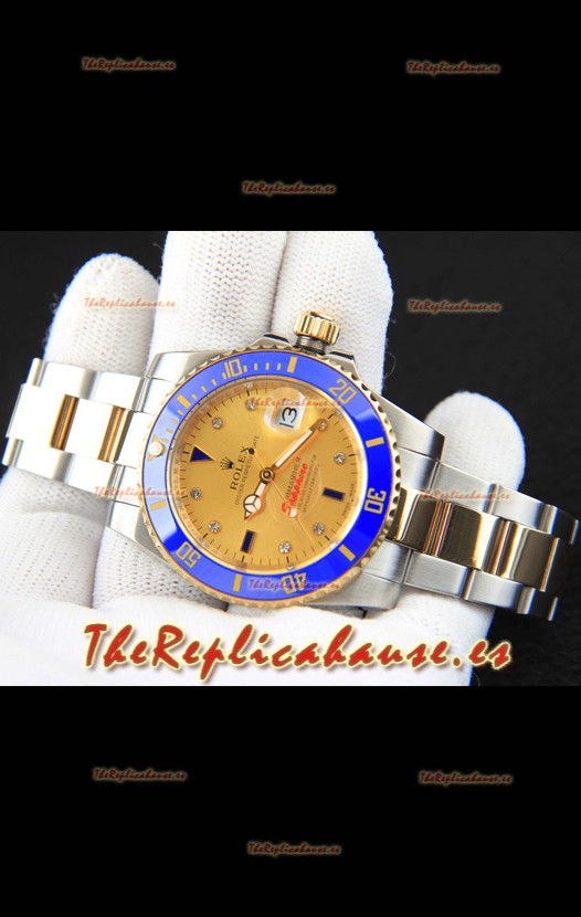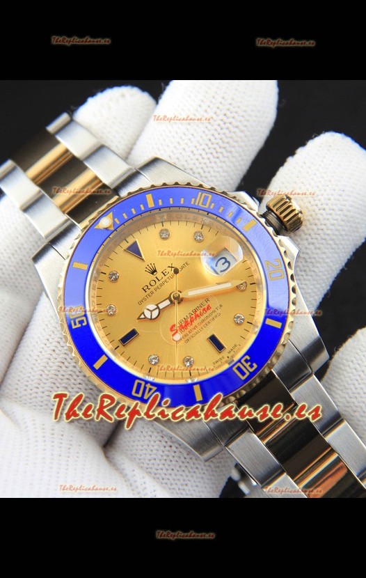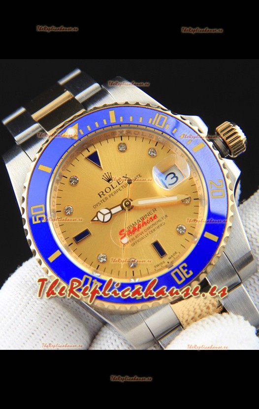 Rolex Submariner Japanese Reloj Réplica en Dos Tonos Caja Oro Amarillo Dial Dorado