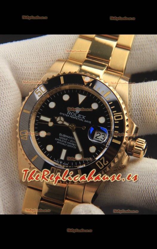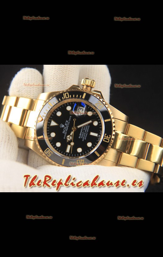 Rolex Submariner Reloj Réplica Japonés Acero 904L Oro Amarillo - Bisel de Cerámica en Negro