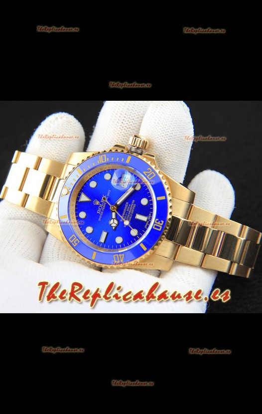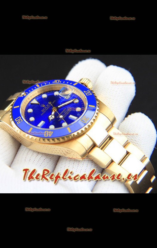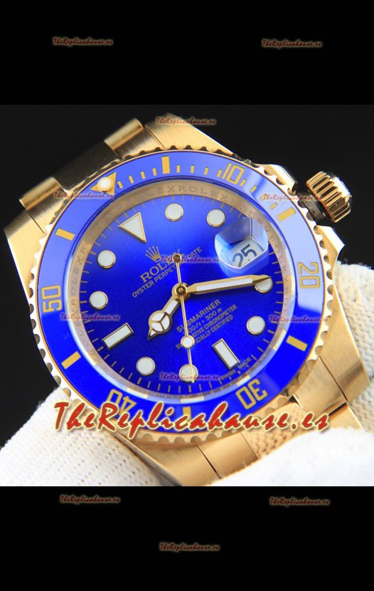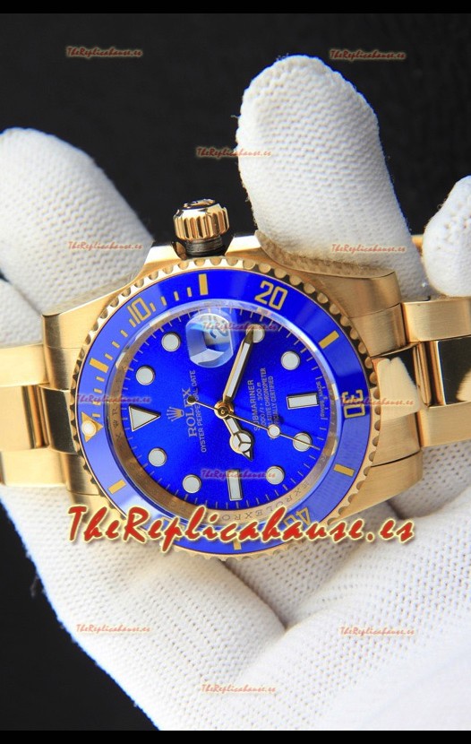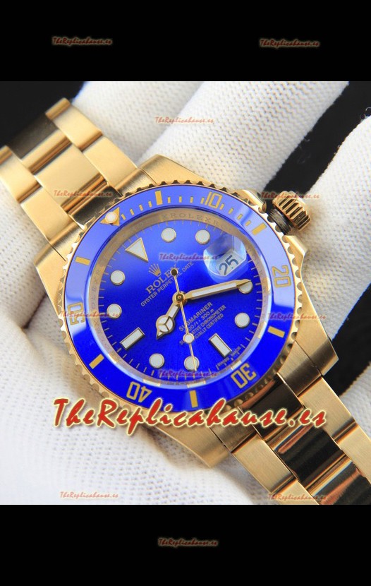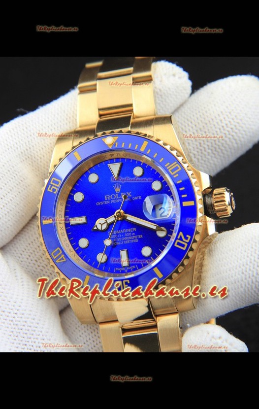Rolex Submariner Reloj Réplica Japonés Caja en Oro Amarillo Dial Azul