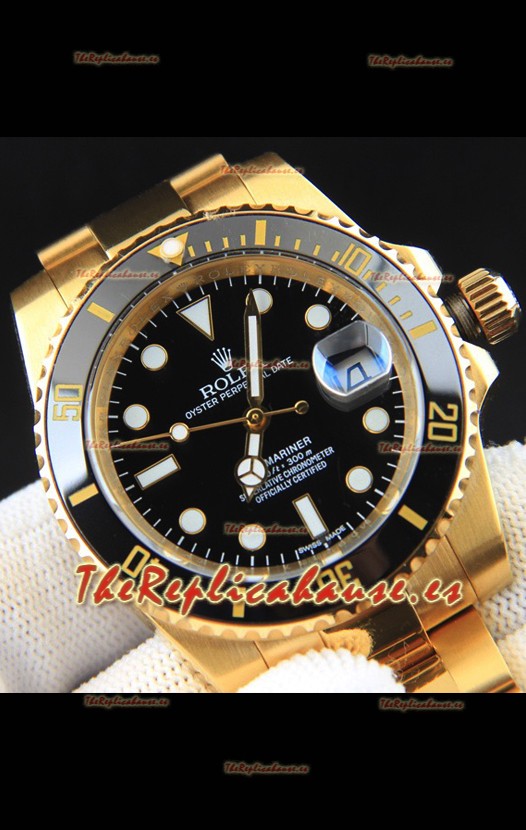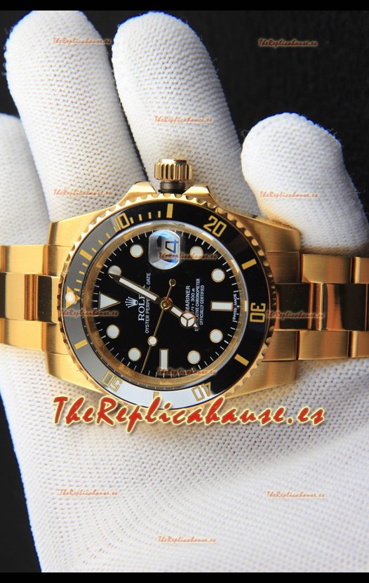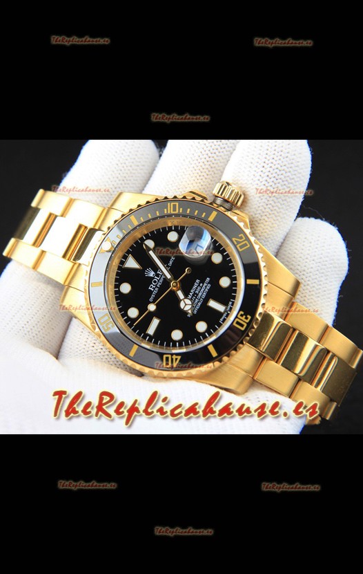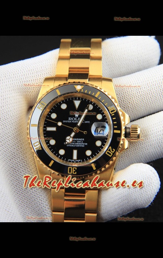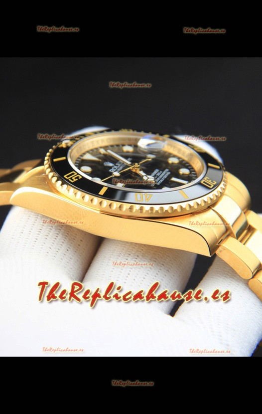 Rolex Submariner Reloj Réplica Japonés Caja en Oro Amarillo Dial Negro
