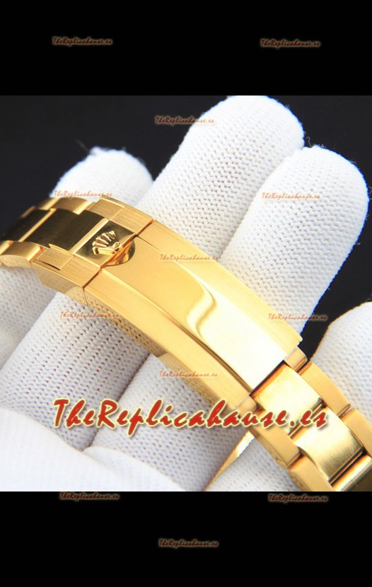 Caja Acero Inoxidable Solido 904L chapada en Oro Amarillo 18K, Bisel de Cerámica con Trasera de la Caja Sólida