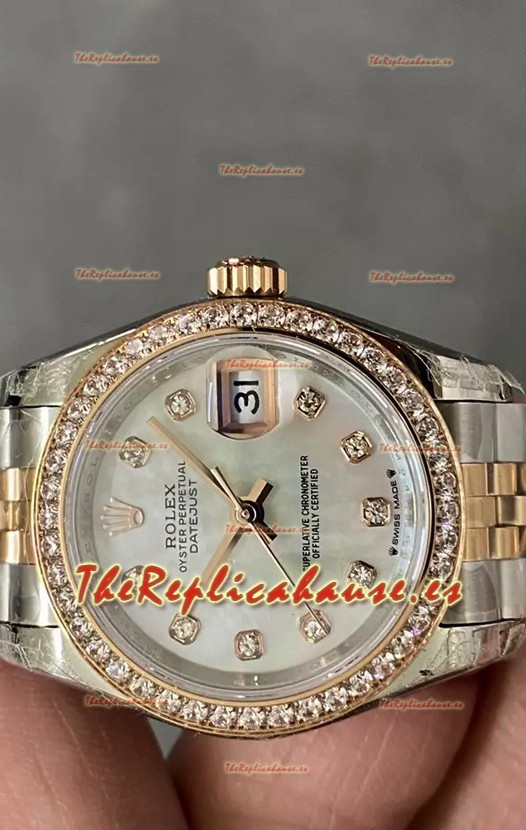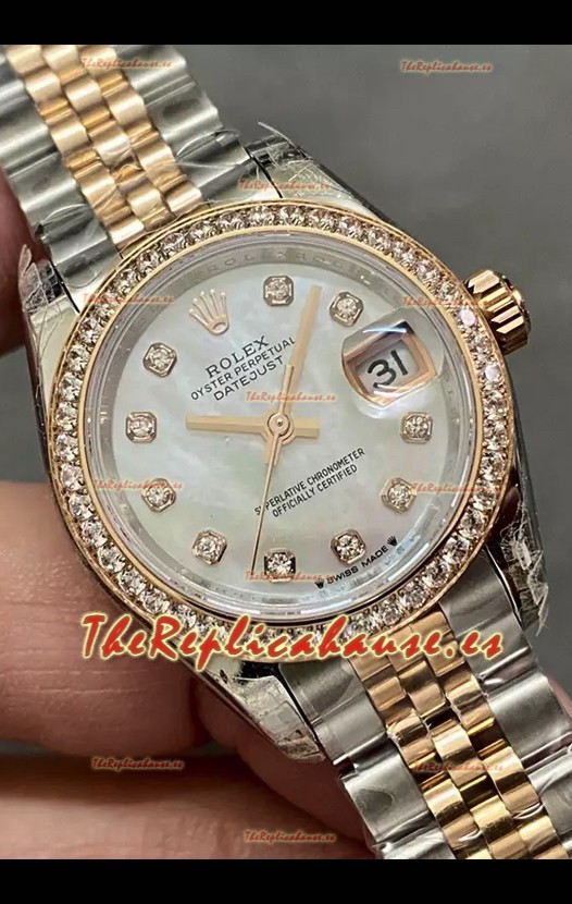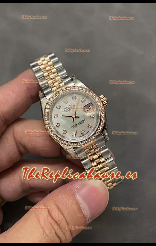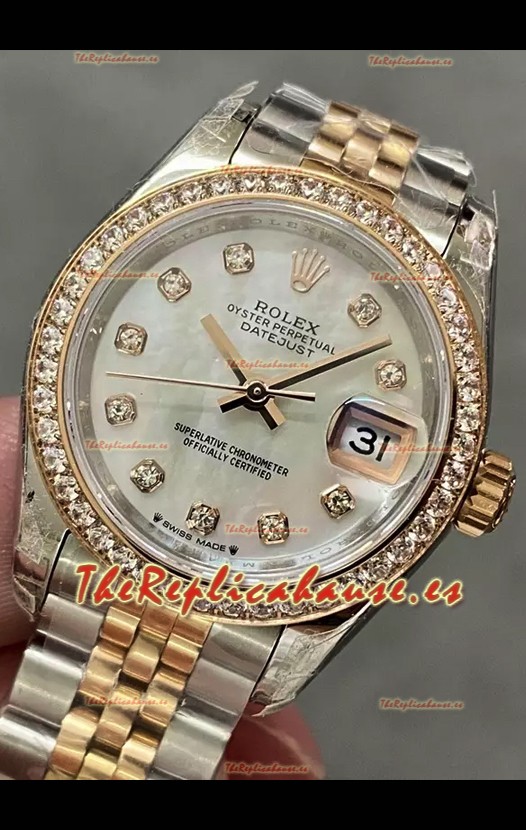 Reloj Rolex Datejust Super Clone Dial Madre Perla Dos Tonos Oro Rosado 28MM