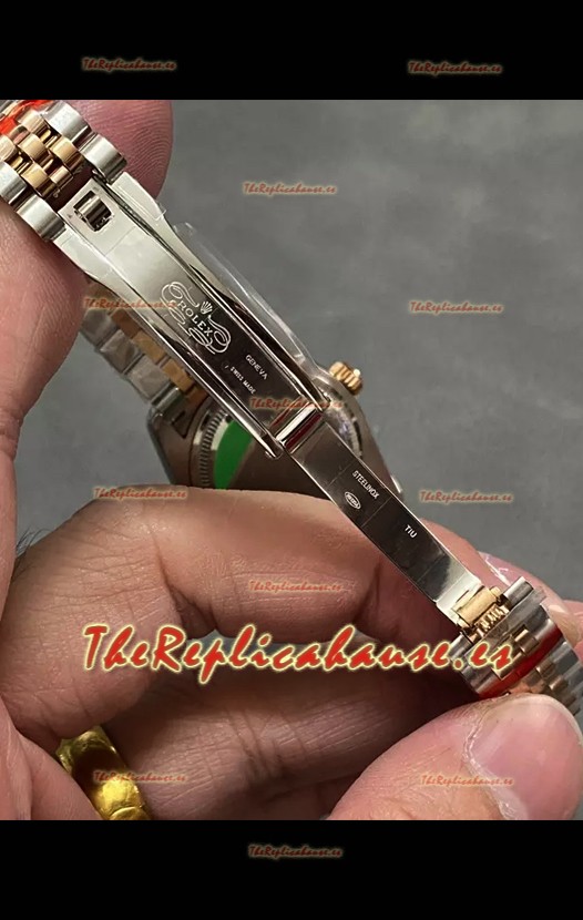 Correa Acero Inoxidable 904L chapada en Oro Rosado 18K Dos Tonos con Cierre Plegable. Los eslabones de los extremos coinciden al ras con la Caja. - Una versión Muy Mejorada de la Correa Datejust