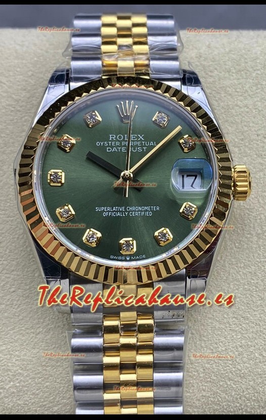 Rolex Datejust 31MM Reloj Suizo en Acero 904L Dial Verde Dos Tonos Réplica Espejo 1:1