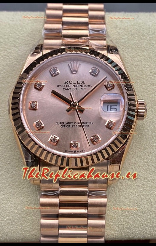 Rolex Datejust 31MM Reloj Suizo en Acero 904L Oro Rosado Dial Réplica Espejo 1:1