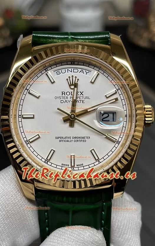 Rolex Day Date Reloj Caja Oro Amarillo Dial Blanco 36MM - Calidad Espejo 1:1