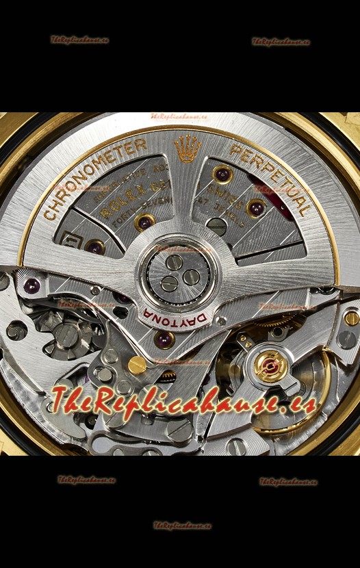 Genuino Movimiento Cal.4131 construido desde cero sin modificaciones, Platos y Rotores chapados en Platino como en el Original. El Mismo Movimiento encontrado en los relojes Rolex Daytona