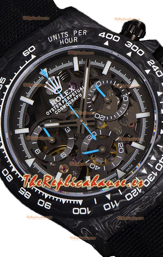 Rolex Daytona DiW Skeleton Reloj Edición Carbono - Caja de Carbono Forjado Correa Negra Réplica Espejo 1:1