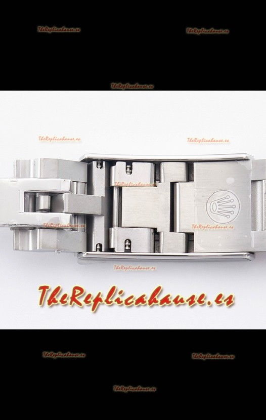 Brazalete Acero Inoxidable 904L tipo Oyster con acabado Cepillado y extensión de Buzo de nuevo diseño. El brazalete se ha actualizado con rodamientos de bolas en Cerámica en el mecanismo de cierre, Hebilla ha sido actualizada para un mejor acabado y Marcas nítidas.