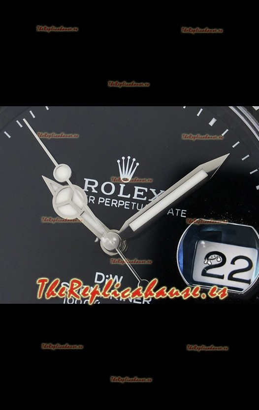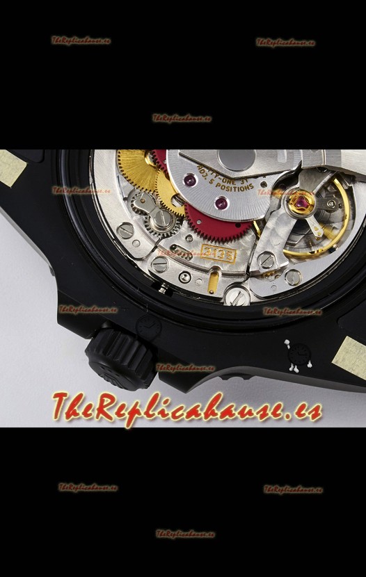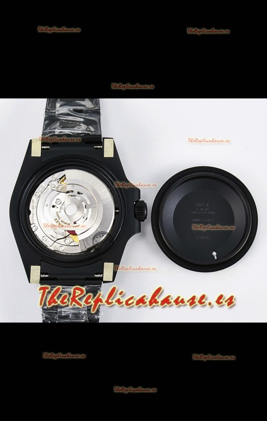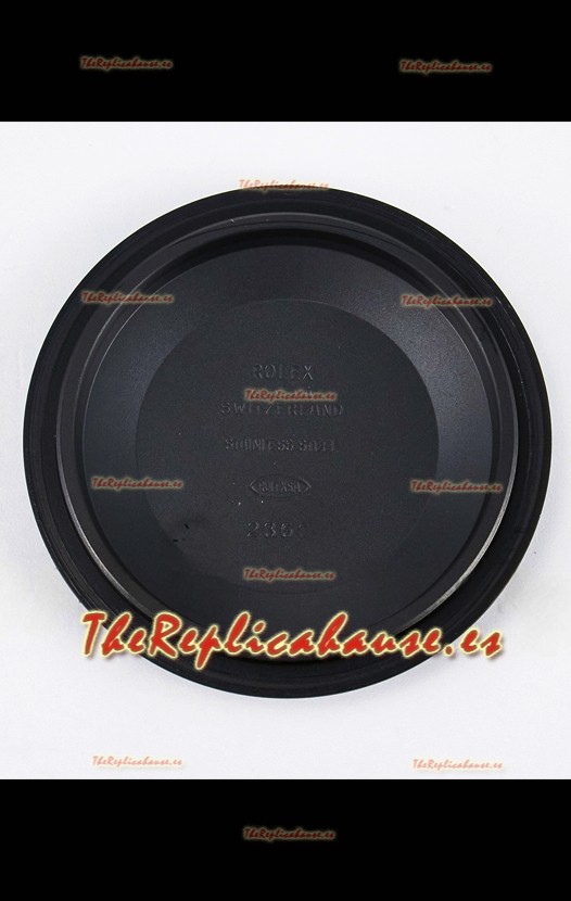Caja de Acero Inoxidable 904L con recubrimiento DLC y todas las Marcas y Grabados Rolex, como en los originales.