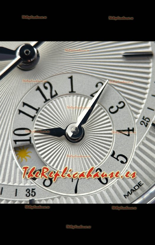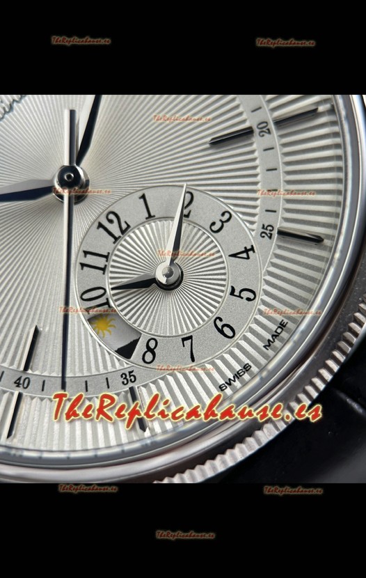 Genuino Movimiento Suizo ETA3165 de Treinta y Una Joyas; 28,800 VPH. Función de Doble Horario disponible.