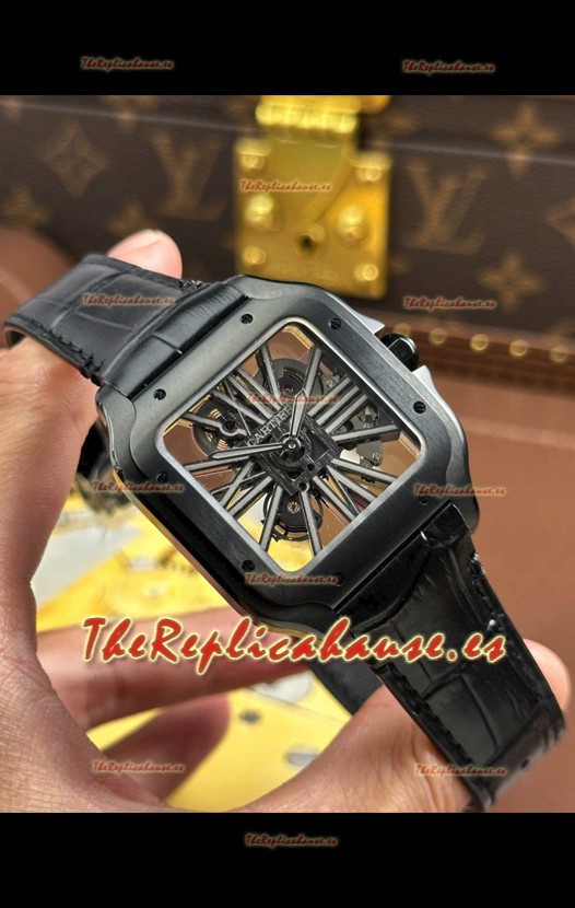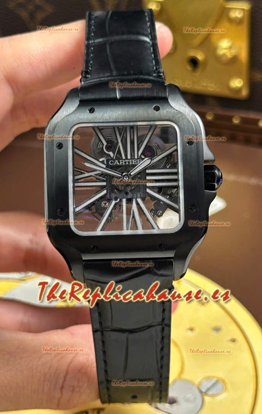 Santos De Cartier Reloj Super Clone Dial en Skeleton Revestimiento PVD