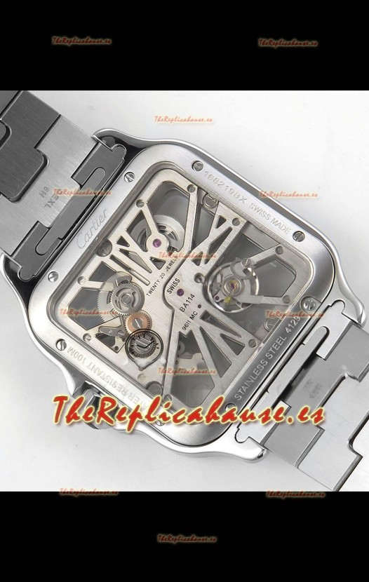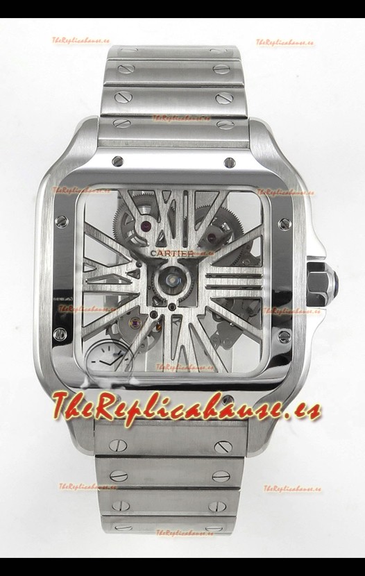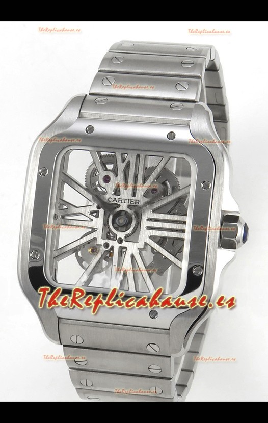 Santos De Cartier Reloj Super Clone Dial Skeleton Caja Acero Inoxidable