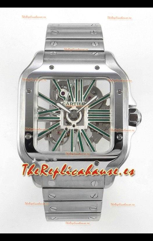 Santos De Cartier Reloj Super Clone Dial Skeleton Caja Acero Inoxidable