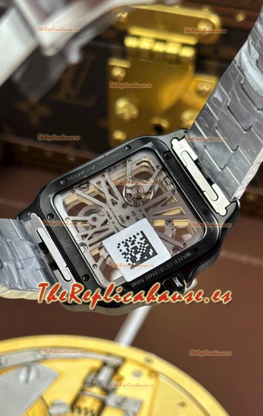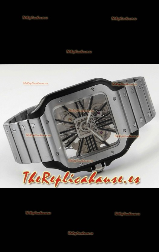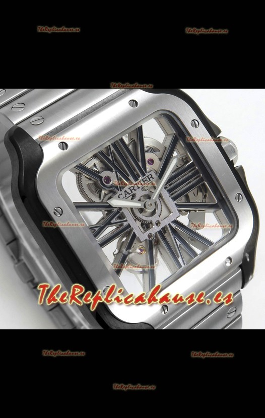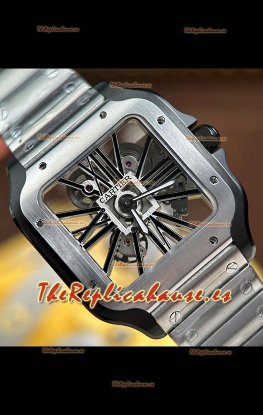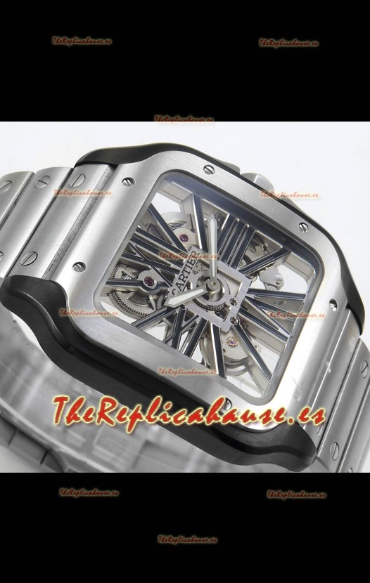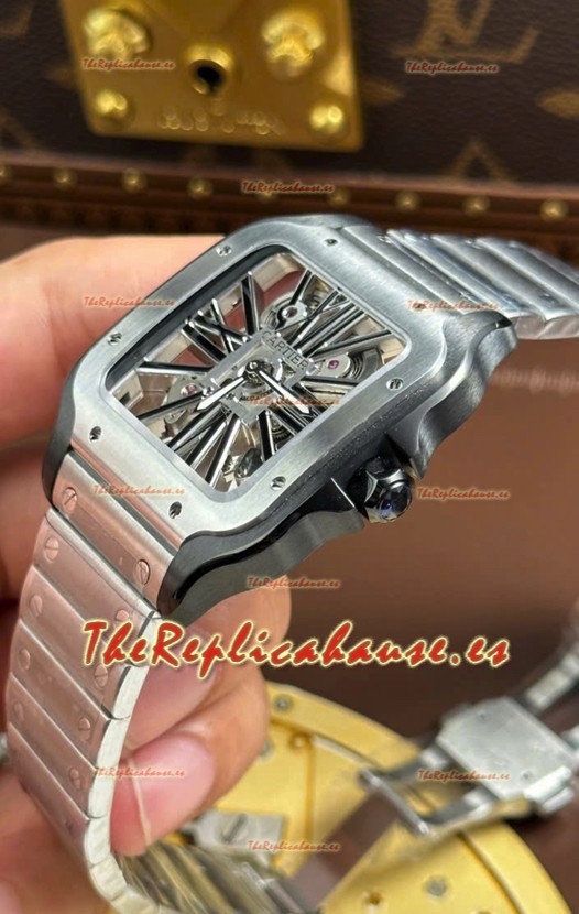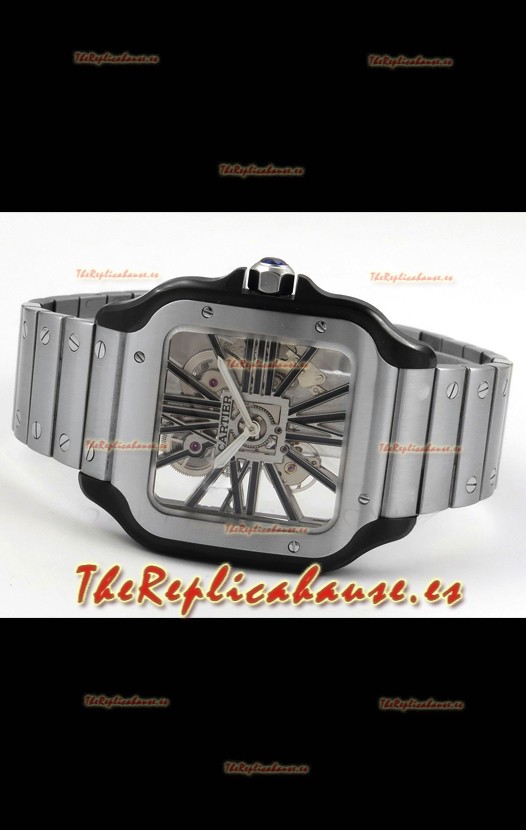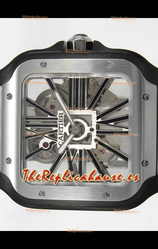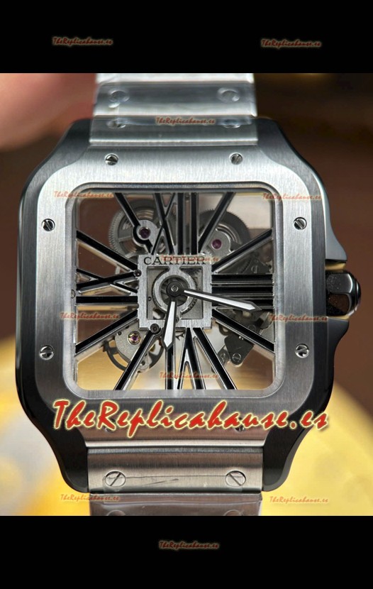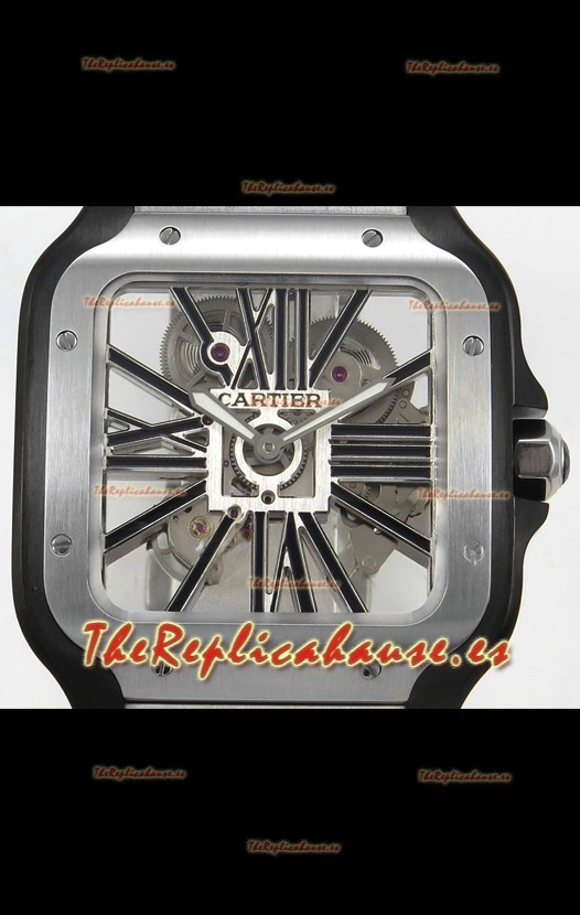 Santos De Cartier Reloj Super Clone en Dial Skeleton Cepillado Revestimiento DLC Coated Caja Acero
